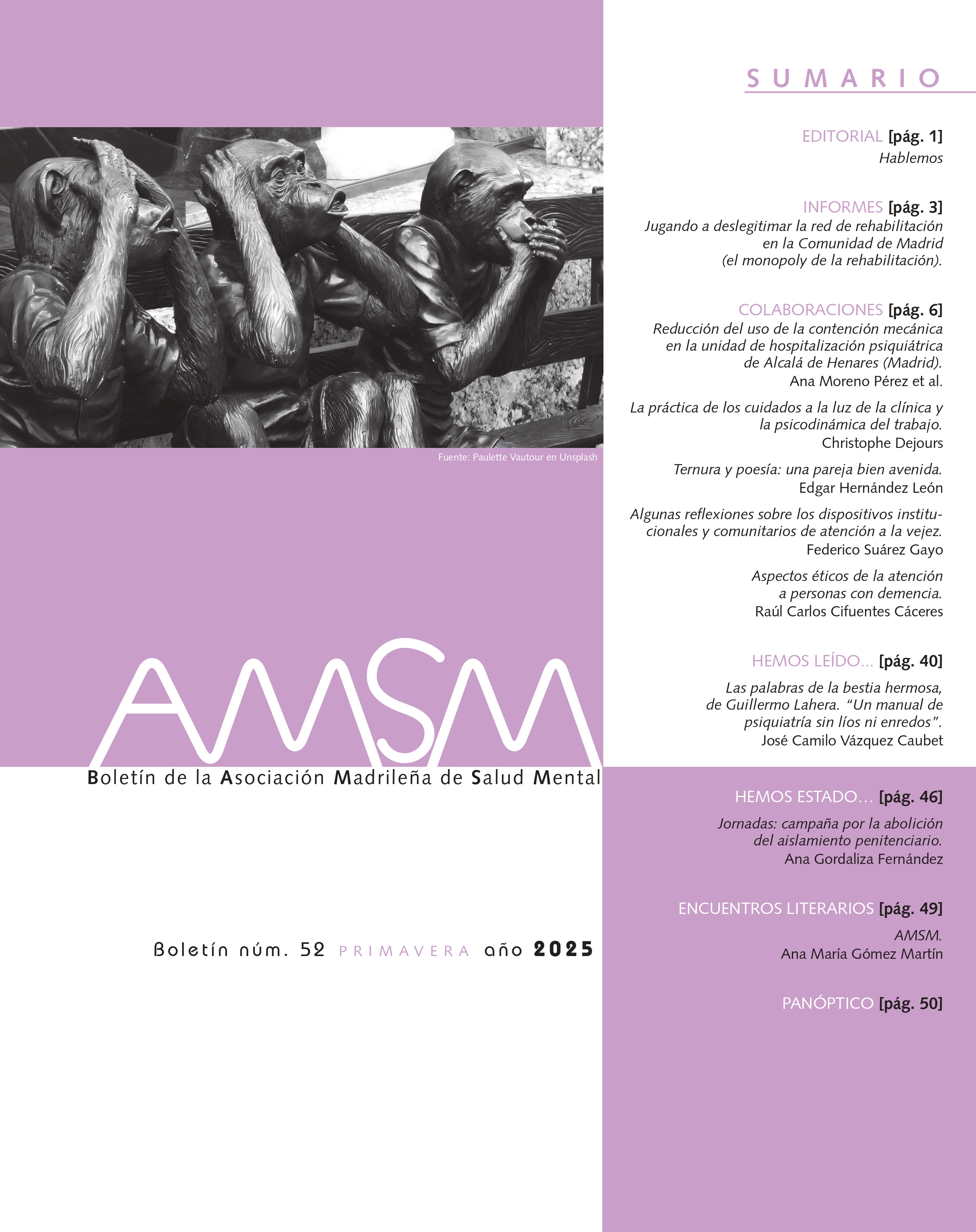 No querríamos finalizar esta propuesta de lectura sin puntualizar que en ningún caso este libro nos parezca que está abogando por la liberalización de la psiquiatría. Apuntado en algunos pasajes (pg. 46) y como parte de la colección “Salud Mental Colectiva”, entendemos que el libro funciona como invitación a pensar en común y de manera crítica, que no es sinónimo de destrucción, una Salud (Mental) Pública.