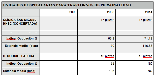 - Desde el 2008 se ha primado el crecimiento de plazas de larga estancia (UCPP), que son plazas con un carácter residencial, frente a plazas de media estancia (que en teoría tienen un carácter rehabilitador). El crecimiento de camas de larga estancia se ha hecho sobre todo mediante el concierto con un Centro Psiquiátrico privado en Avila, alejando aún más a los pacientes de su entorno y familias.