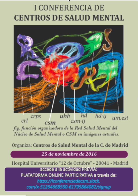 Desde la AMSM animamos a nuestros socios a participar en la I Conferencia de Centros de Salud Mental que se celebrara el Viernes 25 de Noviembre, de 9: 00 a 18:oo, en Salón de Actos del Hospital 12 de Octubre.