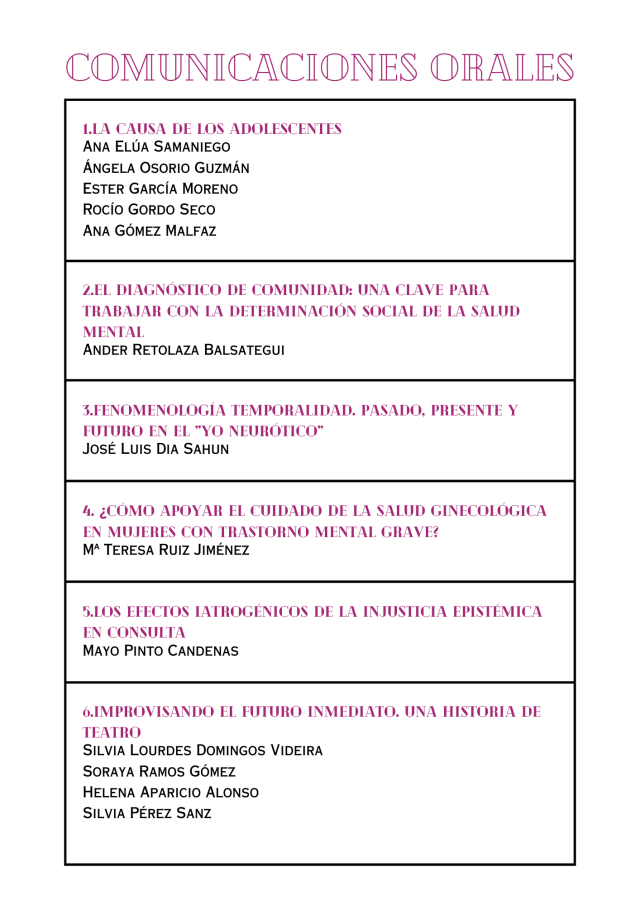 - Viernes 7 de junio, 16 a 18h: HISTORIA DE LA REVISTA AEN PSM Y LAS PUBLICACIONES PSI EN UN CONTEXTO CENTENARIO
