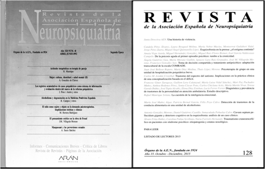 La tensión entre estas dos almas ha sido una constante en la vida de la Revista. Un nuevo equipo intentará reforzar los aspectos más científicos y traducirá el intento en la puesta en marcha de la edición en manos de una editora médica y el cambio de formato de la revista al más frecuente para este tipo de publicaciones DIN A4 La revista volverá con la Junta siguiente, de la que era presidente Manuel Desviat, y con Fernando Colina de Director de Publicaciones a un planteamiento y formato más semejantes a los iniciales que se mantiene hasta la actualidad aunque las pequeñas oscilaciones entre los dos polos han sido frecuentes .