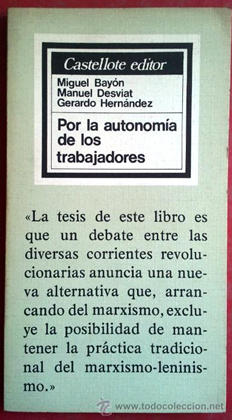 Bayón, M., Desviat, M., & Hernandez, G. (1976). Por la autonomía de los trabajadores. Madrid: Castellote.