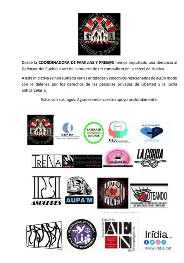 Pingback: APOYO AL ESCRITO AL DEFENSOR DEL PUEBLO POR EL FALLECIMIENTO DE PERSONA INTERNA EN LA PRISIÓN DE HUELVA TRAS PROLONGADO AISLAMIENTO – Boletín Informativo de la Sanidad Pública
