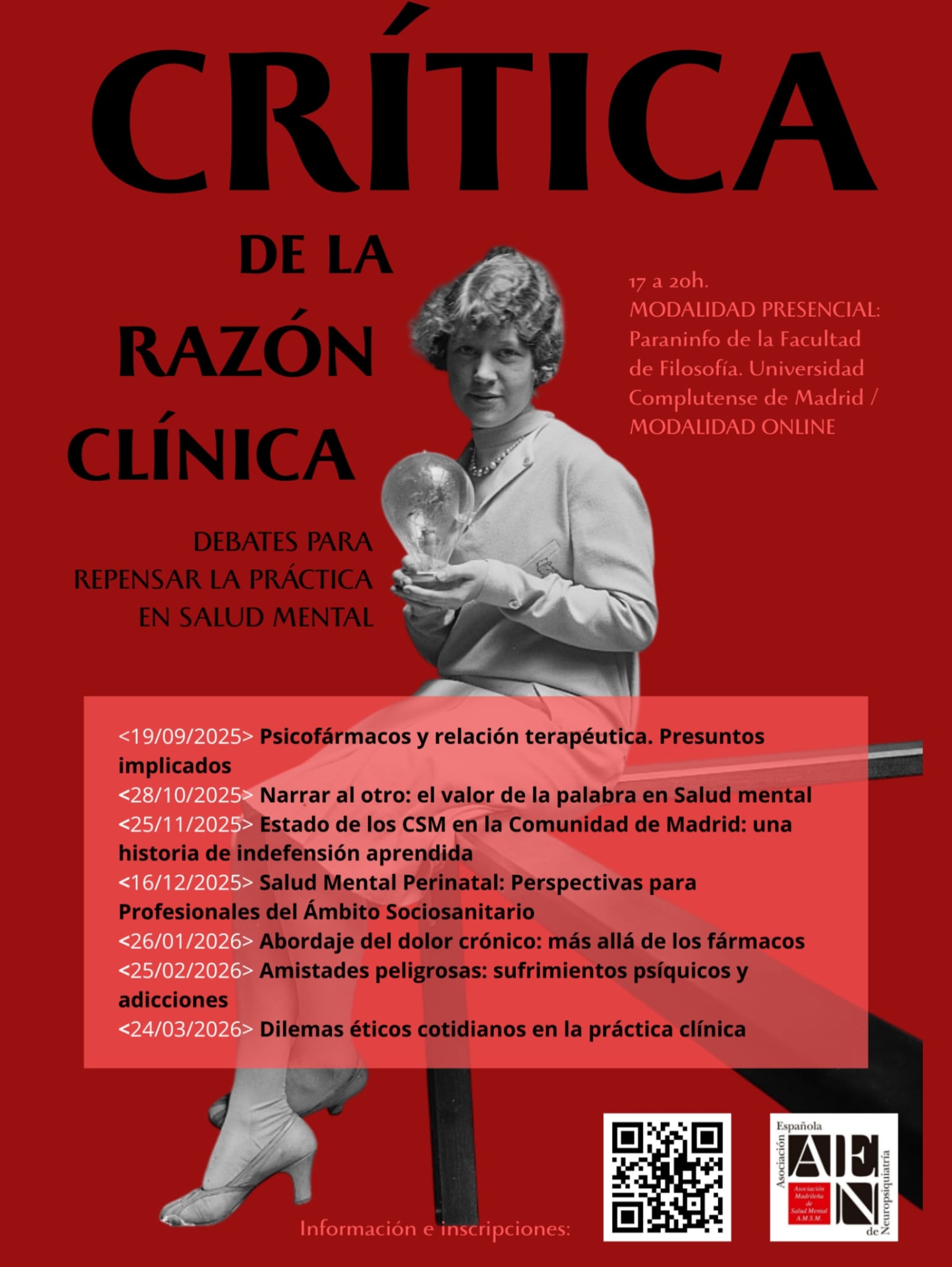 Este ciclo de mesas redondas nace con la intención de abrir un espacio de reflexión sobre la práctica en salud mental. Alejándonos de la tendencia a reproducir modelos técnicos o normativos de intervención, nos proponemos detenernos a pensar qué hacemos, cómo lo hacemos y desde qué marco lo pensamos. Para ello nos adentraremos en siete enfoques diferentes de nuestro quehacer en salud mental que recorrerán y entretejerán la clínica, la terapéutica, la asistencia, el efecto de la experiencia, el lugar del cuerpo y el valor de la palabra. A partir de estas distintas perspectivas, buscamos revisar críticamente nuestras intervenciones, atender a las dimensiones éticas, relacionales y sociales que atraviesan el trabajo clínico, y recuperar una mirada más consciente, compleja y comprometida con el alivio del sufrimiento psíquico.