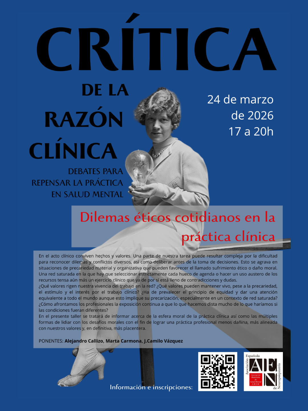 En el presente taller se tratará de informar acerca de la esfera moral de la práctica clínica así como las múltiples formas de lidiar con los desafíos morales con el fin de lograr una práctica profesional menos dañina, más alineada con nuestros valores y, en definitiva, más placentera.
