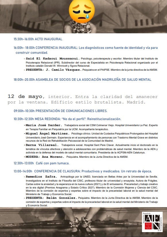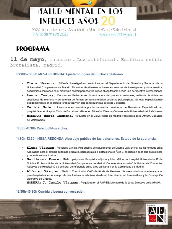 MODERA: Marta Carmona. Psiquiatra en el CSM Puerta de Madrid. Presidenta de la AMSM. Coautora de Malestamos.